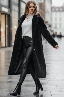 Ženski zimski plašč teddy krzno dolg črn Dstreet NY0760z