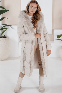 Ženska zimska dolga prešita jakna s krznom bež barve Dstreet TY5075