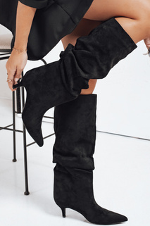 Ženski škornji iz semiša z nagubanim zgornjim delom črni Dstreet ZY1138