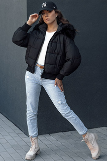 Ženska dolga prešita jakna STYLOWQ z umetnim krznom črna Dstreet TY4631