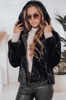Ženski kratki plašč ELMIRIS črn krznen plašč Dstreet TY4995