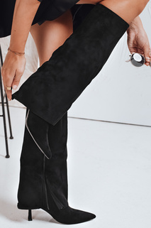Ženski škornji iz semiša s širokim zgornjim delom črni Dstreet ZY1096