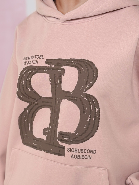 Ženska bluza prevelike velikosti, ohlapnega kroja, idealna za vsakodnevno nošenje. Model s kapuco in okrasnim kengurujskim žepom, ki združuje udobje z modnim slogom. Okrašen je s presenetljivim tiskom napisov, ki mu daje značaj. Univerzalna velikost ustreza od XS do L. Rebraste manšete in rob za udobno prileganje. Vsestranski kroj se bo dobro podal k vsakdanjim oblačilom in ustvaril popolno osnovo za različne obleke.