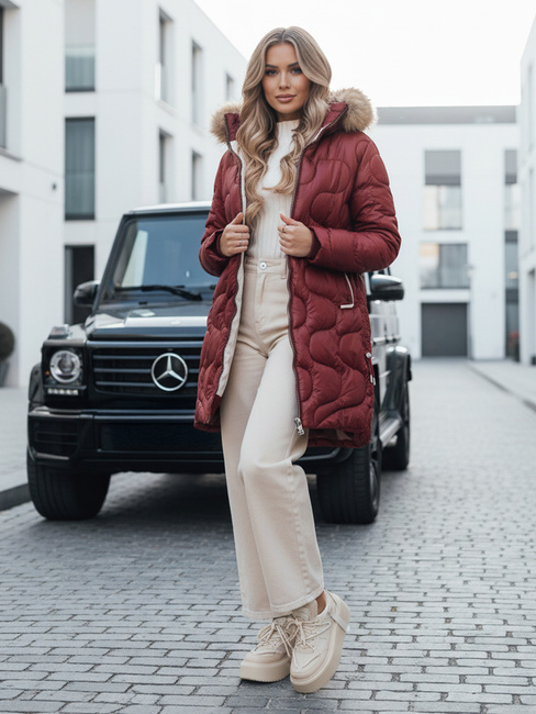 Ženska zimska jakna VIRELIA prešita s kapuco bordo barve Dstreet TY4935