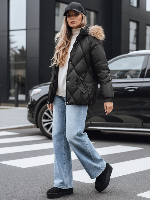 Ženska zimska prešita jakna s kapuco črna Dstreet TY5232