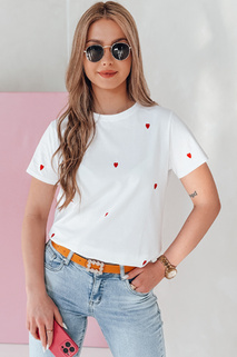 Ženska majica prevelike velikosti s srčki ROMAFINA bela Dstreet RY2889