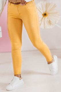 Ženske hlače tankega kroja s pasom TAIRONIK mustard Dstreet UY2539