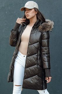 Ženska dolga prešita jakna STYLOWQ z umetnim krznom črna Dstreet TY4631