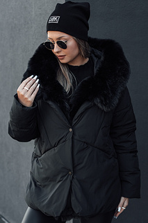 Ženska dolga prešita jakna STYLOWQ z umetnim krznom črna Dstreet TY4631