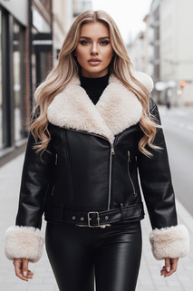 Ženska zimska usnjena jakna BELLCIAO black and beige Dstreet TY4685