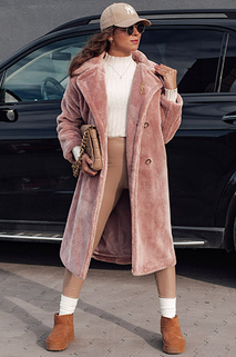 Ženski zimski plašč LUXERII dolg krznen plašč roza Dstreet TY4689