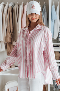 Ženska srajca oversize z daljšim hrbtom SAMONE v roza in belih črtah Dstreet DY0462